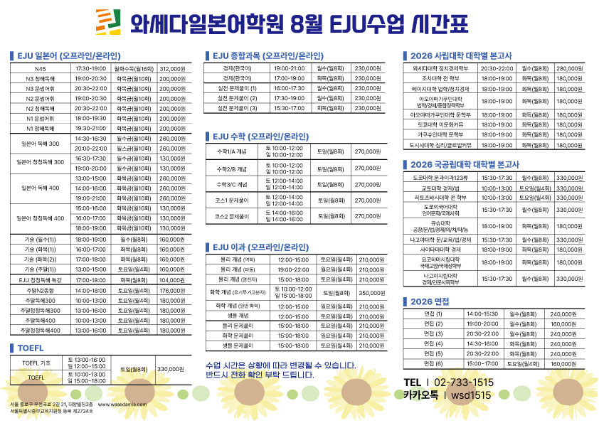 8¿ù ÀϺ»À¯ÇнÃÇè(EJU) ½Ã°£Ç¥(¿ÀÇÁ¶óÀÎ/¿Â¶óÀÎ) °ü¸®ÀÚ ¦¢ 2025-07-24 HIT 1036 |